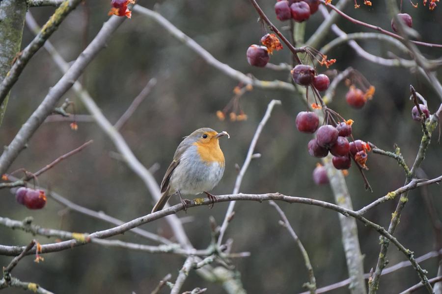 Kein Schnee aber dafür wieder Rotkehlchen und Reiher.