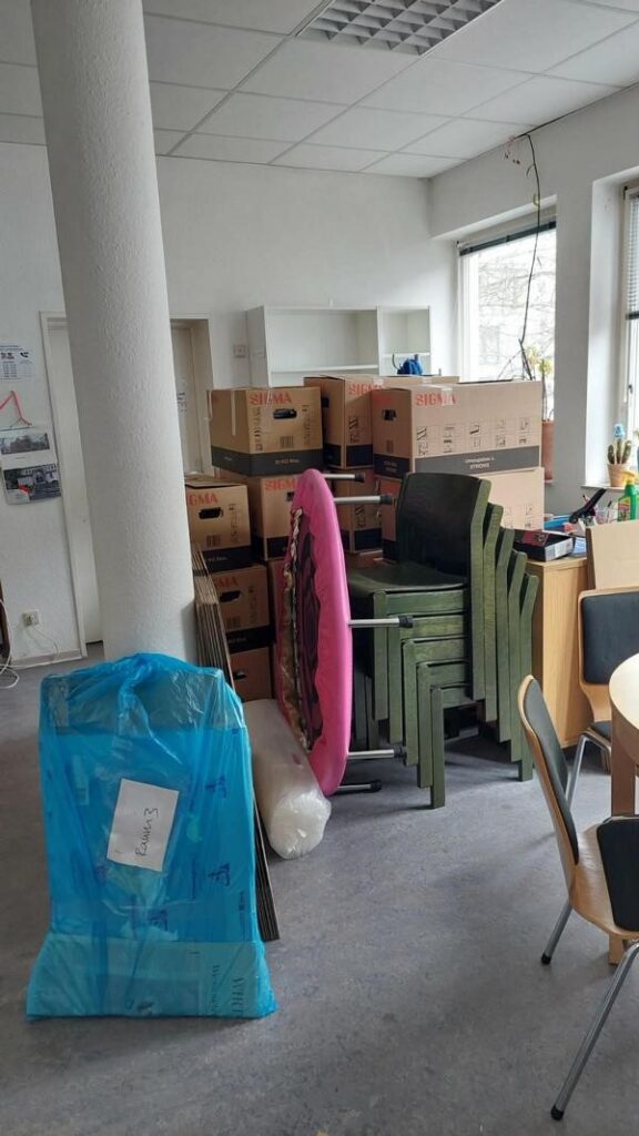 Am Donnerstag wurden noch die Letzten Reste in die Umzugskisten gepackt und dann war mein kleines Büro sehr leer und der Vorraum sehr voll.