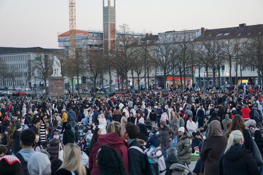 Um 18 Uhr war ich mit einer Coaching-Teilnehmerin und Kolleginnen auf dem Friedrichsplatz verabredet. Dort wurde zum allerersten Mal ein großes, öffentliches, gemeinsames Iftar/Fastenbrechen veranstaltet, zu dem alle Menschen eingeladen waren, die dabei sein wollten.