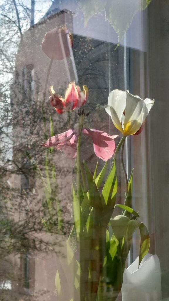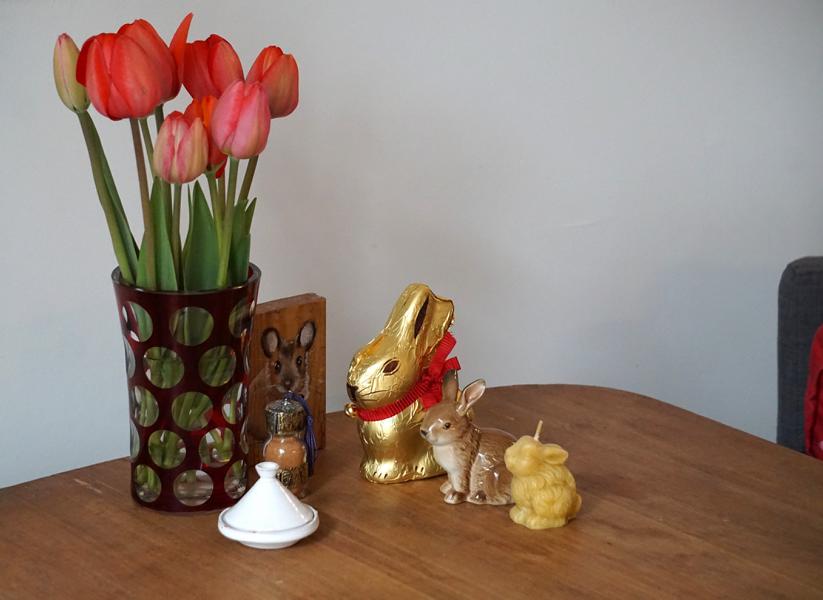 Hasenparade mit Maus am Sonntagmorgen. Einige Freilandtulpen waren aufgeblüht, nur denen im Wintergarten ist es noch zu kalt.