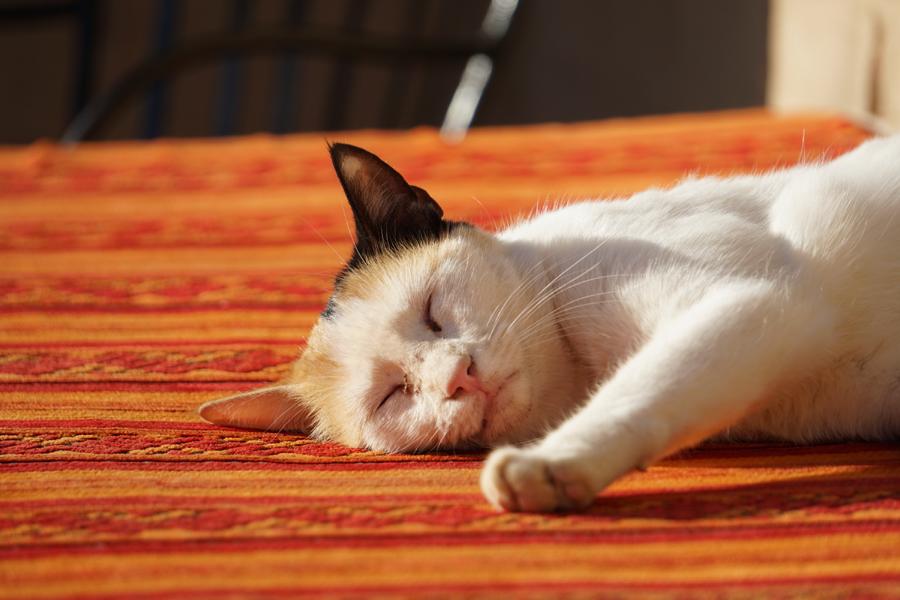 Auf der Bank am Frühstückstisch begrüßten mich drei weitere Mitreisende und die Katze. Na ja, sie begrüßte mich nicht wirklich, sondern schlief einfach weiter.