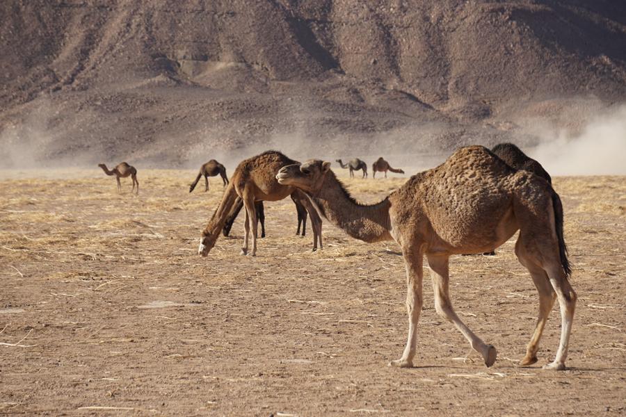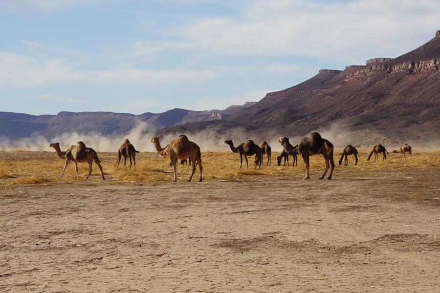 Fünfzehn Minuten von unserem Ziel entfernt begegnete uns dann eine riesige Herde Dromedare.