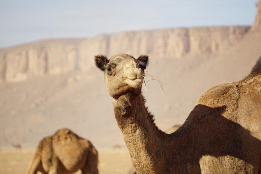 Es war eine etwas aufgeregte Ankunft, denn wir hörten ein Dromedar Weibchen mit einem nur 2 Tage alten Kind laut brüllen und konnten uns nicht erklären was los war. Soviel ich verstand, gehörten die beiden zu der großen Herde, die wir 2 Tage zuvor gesehen hatten. Sie waren zurückgeblieben und wurden etwas später von jemandem aus der Nomadenfamilie die in der Nähe ihr Lager hatte, zur Herde zurückgebracht.