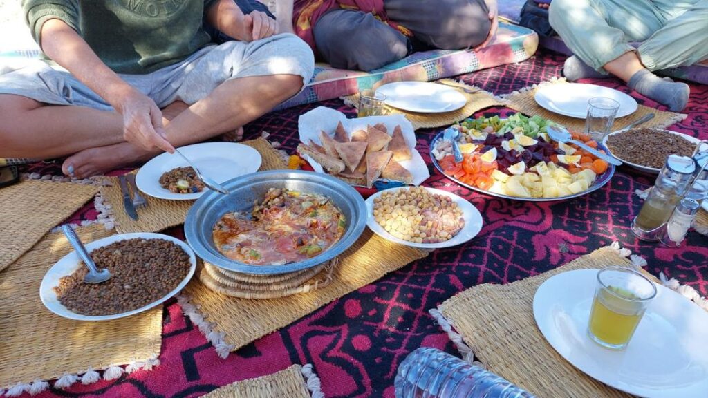 Am nächsten Morgen gab es, wie auch an den folgenden Tagen, um 7:15 heißen Tee und um 7:30 saßen wir auf unseren Yogamatten. Die Zeitangaben sind immer in marokkanischer Zeit zu betrachten – es kann also auch etwas später gewesen sein. Aber niemals früher. Der erste Kaffee des Tages war dann für mich immer ein ganz besonderer Genuss.