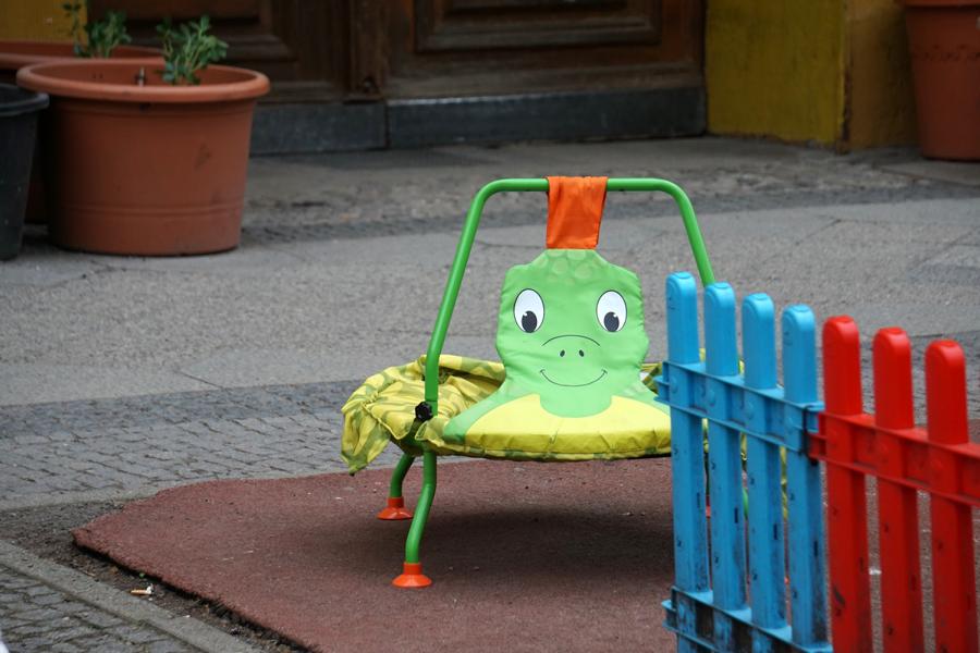 Am Freitagmorgen wurde ich pünktlich um 5:45 von meinem totgeglaubten Handy geweckt. Es steckte also doch noch irgendwie etwas Leben drin. Und als ich auf dem Weg zum Café das lustige Kinder-Frosch-Trampolin sah, nahm ich es als gutes Omen. Nach dem Cafébesuch lief ich zum am Vorabend gefundenen Handyladen. Dort wurde ich an die für Reparaturen zuständige Filiale weitergeleitet. Dazu mußte ich fast den ganzen Weg wieder zurück laufen. Dort angekommen, war der für Reparaturen zuständige Mitarbeiter noch nicht da.