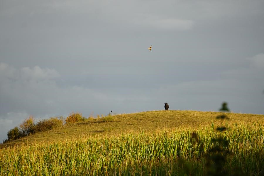Samstagmorgen bin ich um 7:00 aufgewacht und kurz danach aufgestanden. Zuerst etwas Yoga geturnt, anschließend barfuß durchs morgennasse Gras gelaufen, dabei wurde ich vom Rind beobachtet. Später gab es Tee mit Buch am offenen Fenster.