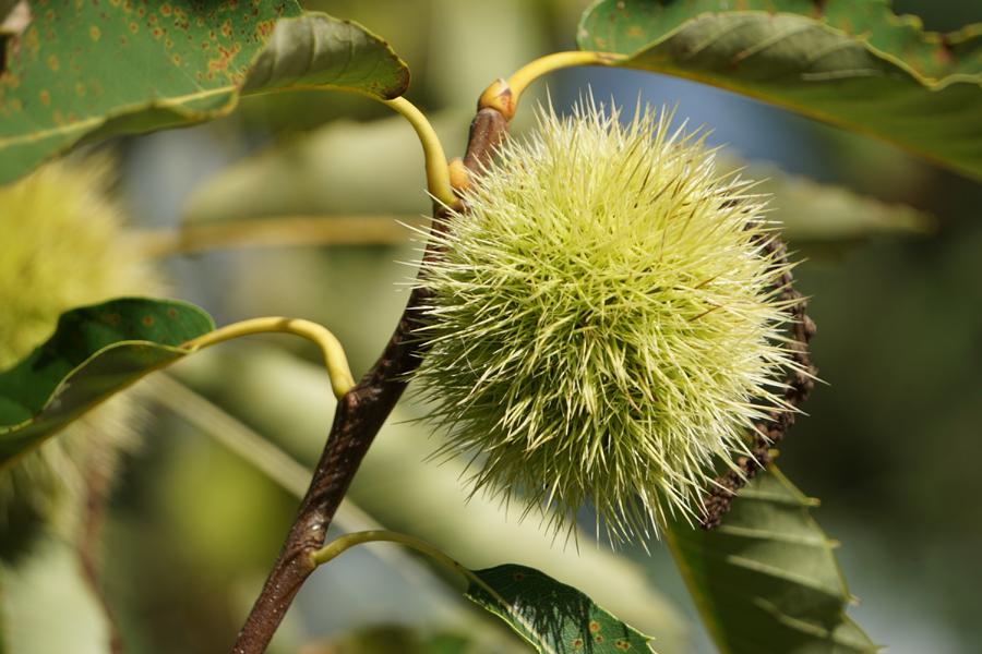 Diese stachelige Knödelpflanze ist eine Esskastanie.