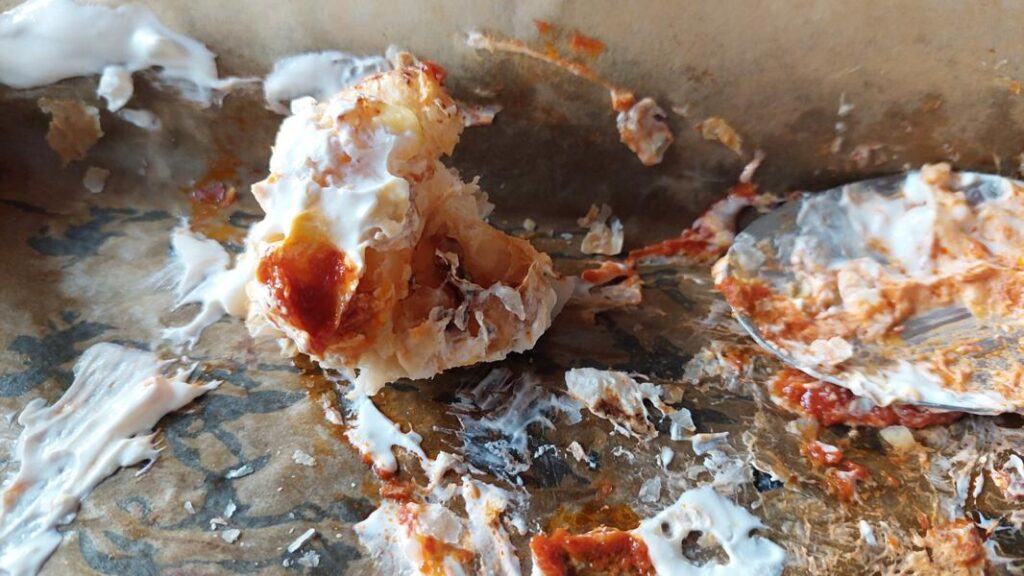 Dort gab es leider keine Reste vom Vortag, sondern ich hab Rosenkohl und Zwiebeln auf Bohnen-Hummus zubereitet.
