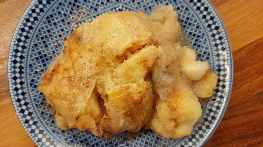 Danach habe ich noch diese Apfeltaschen gemacht, die eigentlich Schnecken sein sollten. Ich habe sie auch zu Schnecken gedreht. Ist aber halt nicht zu erkennen. Der Boden klebte auch wieder am Backpapier. War beides lecker.
