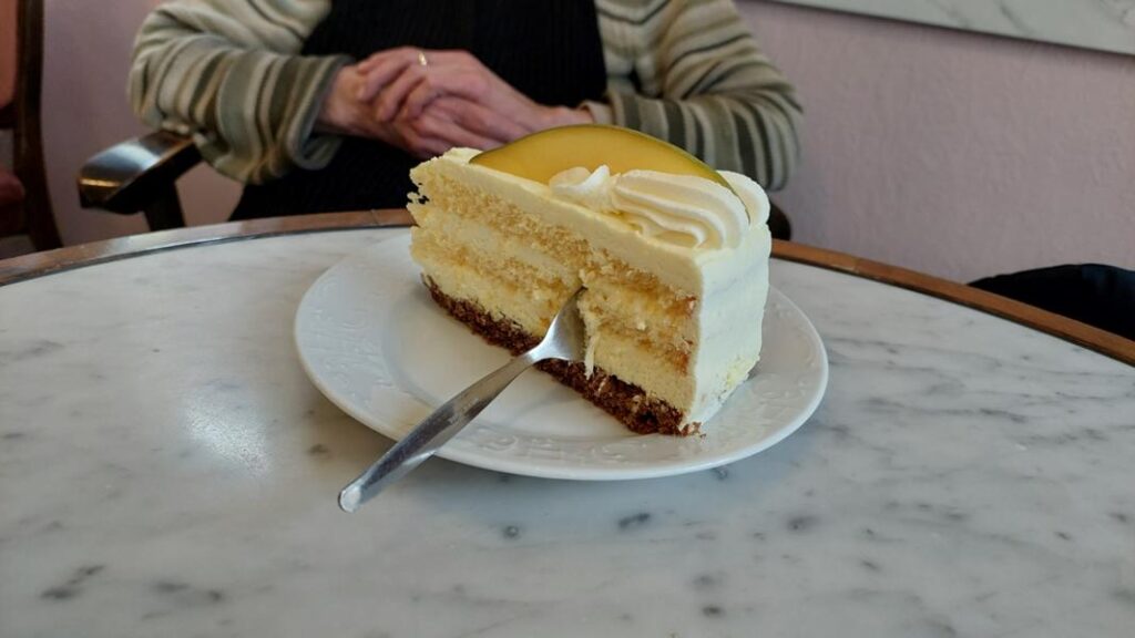 Anschließend fuhr ich zu Erica. Erst Einkauf dann Kaffee & Kuchen. Mango-Torte, hmmm schön süß fand Erica.
