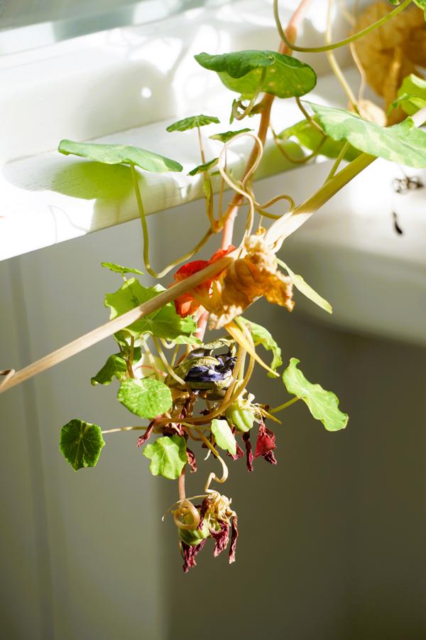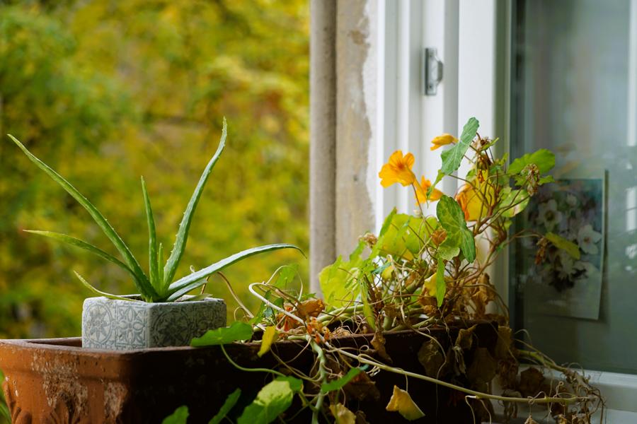 Auch am Sonntagmorgen saß ich mit Tee & Kaffee und Buch im Wintergarten. Erst war der Himmel grau und dann fing die Sonne an zu scheinen und bescherte mir einen Energieschub. Weil mein Reisefieber jeden Tag größer wird, habe ich Sachen gewaschen, die ich mitnehmen möchte. Bügeln habe ich auf nächsten Sonntag verschoben. Stattdessen war ich im Hinterhofgarten und habe Tulpenzwiebeln vergraben.