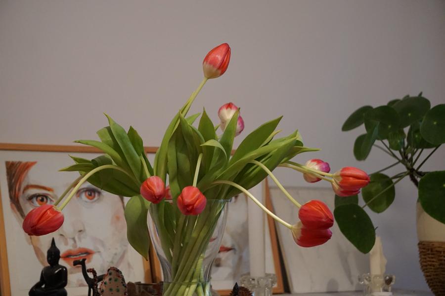 Durch mein Schlafzimmer schlängeln sich die Tulpen und bald werde ich mich dort ins frisch bezogene Bett legen.