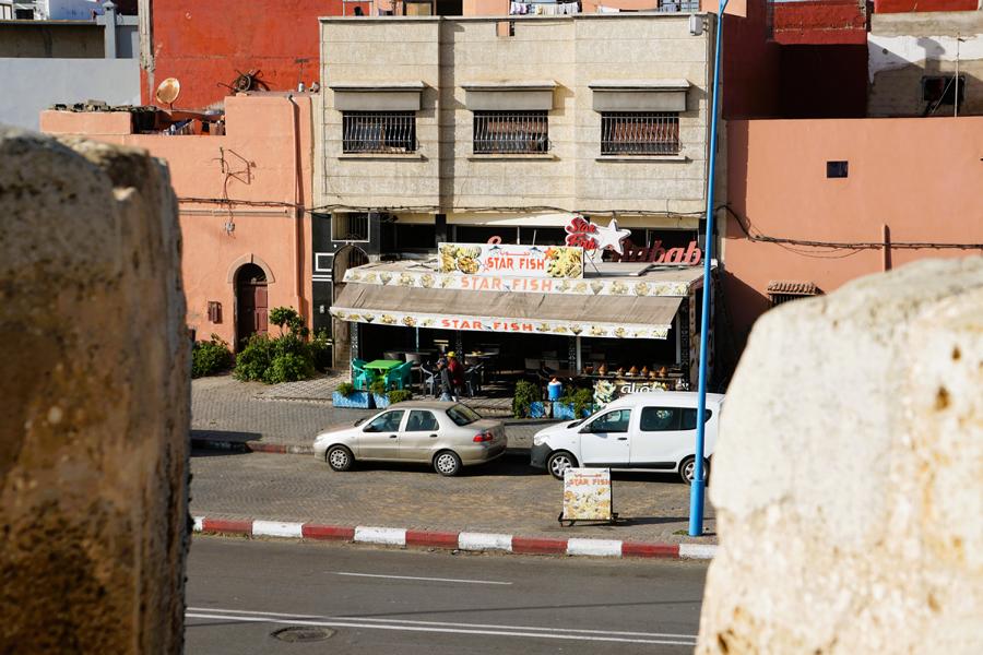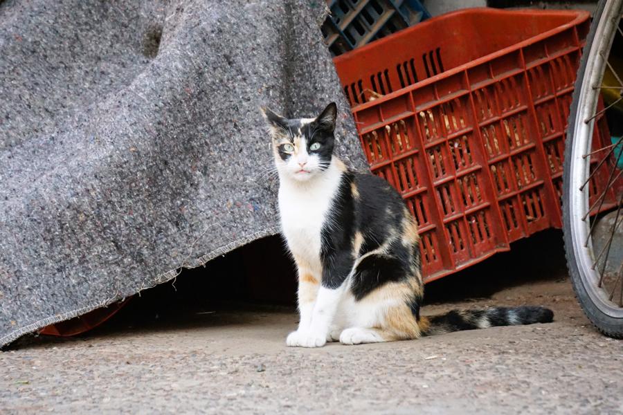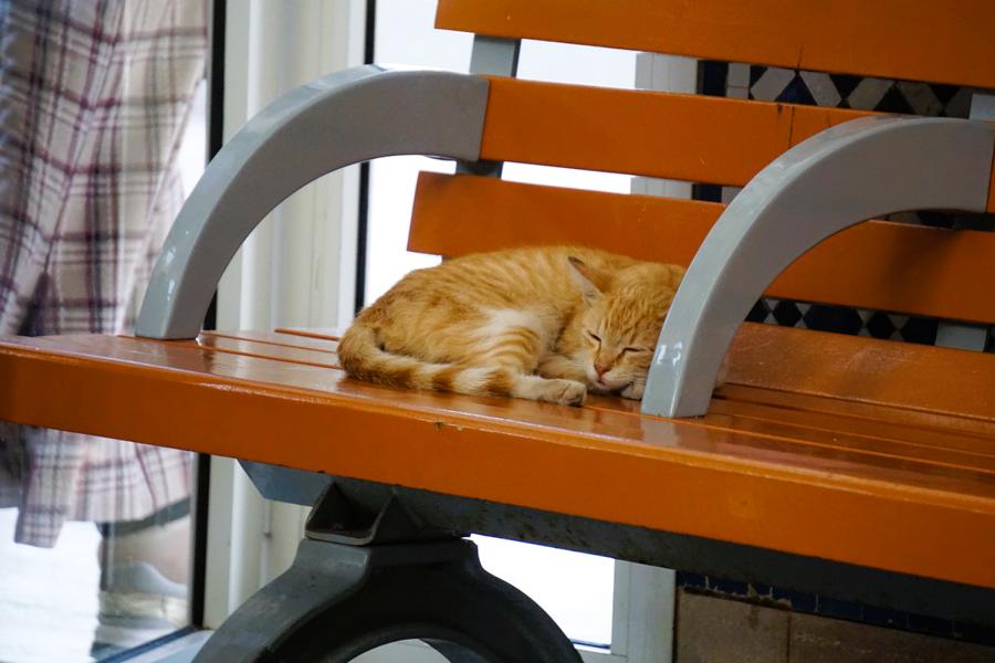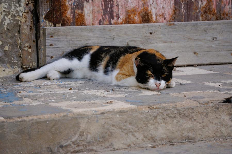 Erste Katzenbegegnung in El Jadida am Bahnhof. Anschließend fuhr mich ein Petit Taxi zu meiner Unterkunft in der Cité Portugaise.