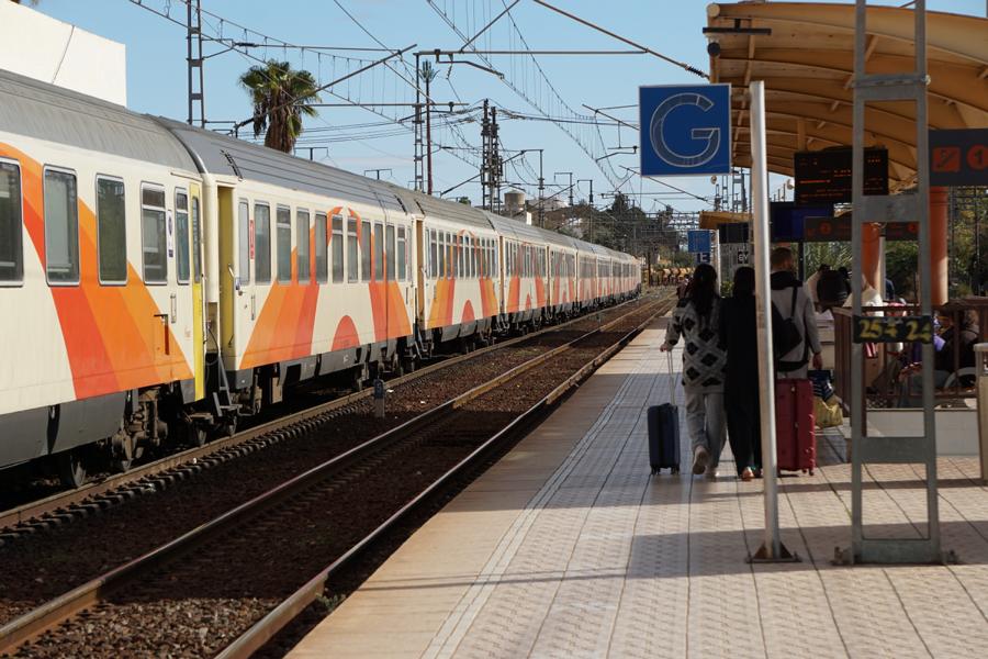 Dann ließ ich mich mit dem Taxi zum Bahnhof fahren. Ich dachte ja bisher, es gäbe nur einen Bahnhof in Meknés – nun kenne ich auch den zweiten. Dort hatte ich noch etwas Zeit für einen Kaffee, der eigentlich lecker gewesen wäre. Aber mit so einem blöden Infekt und brummendem Kopf hätte ich mal lieber was anderes trinken sollen. Dann habe ich noch ein wenig draußen auf der Bank gesessen, den Leuten zugeschaut und an einer Katzenrettungsaktion teilgenommen. Eine kleine Katze lief zum Bahnsteig. Die Frau neben mir und ich bekamen einen großen Schreck. Sie sprang auf und lief zur kleinen Katze, die aber mittlerweile auf den Gleisen saß. Ein Bahnbeamter lief herbei, sprang auf die Gleise und trug die Katze in die Bahnhofshalle. Kaum hatte er sie abgesetzt, entwischte sie auch schon wieder aus der Halle und lief wieder Richtung Gleise. Diesmal sprang ich auf, schnappte sie mir und trug sie durch die Bahnhofshalle, ganz nach draußen und setzte sie vor dem Bahnhof ab. Und nein, ich verschwendete keinen Gedanken an mein Gepäck, denn ich war mir sicher, dass die junge Frau und der Bahnbeamte alles gut im Auge behalten würden. So ist es mir bisher immer ergangen in Marokko. Ich frage nach der Toilette und alle geben mir sofort zu verstehen, dass ich mein Gepäck stehen lassen soll und sie aufpassen würden. Sehr schön und freundlich. Und auch im Zug hebt immer jemand sofort meine Tasche auf die Gepäckablage.