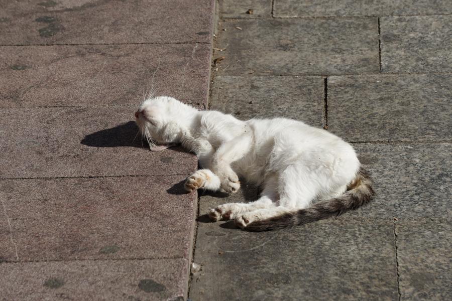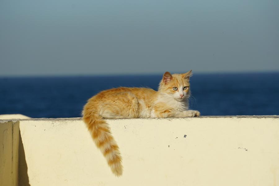Einfach mal so fotogen auf der Mauer zum Meer rumliegen.