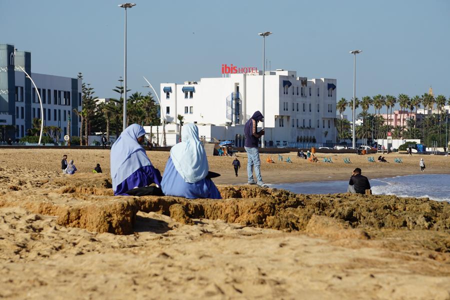 Für Fotos war es mir zu eng und aufdringlich wollte ich auch nicht sein, aber es war total schön und ich wurde von vielen Frauen freundlich gegrüßt. Das war mir heute Morgen am Strand schon aufgefallen. Das ist mir in Marokko bisher eher von Männern begegnet. Die Frauen waren oft eher zurückhaltend. Umso erfreuter war ich darüber.