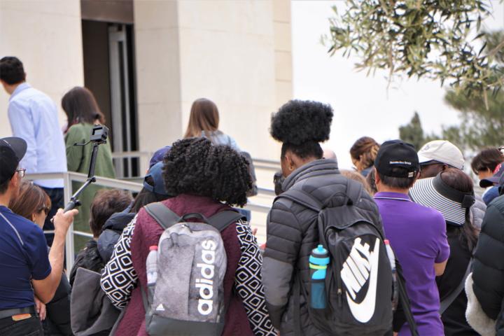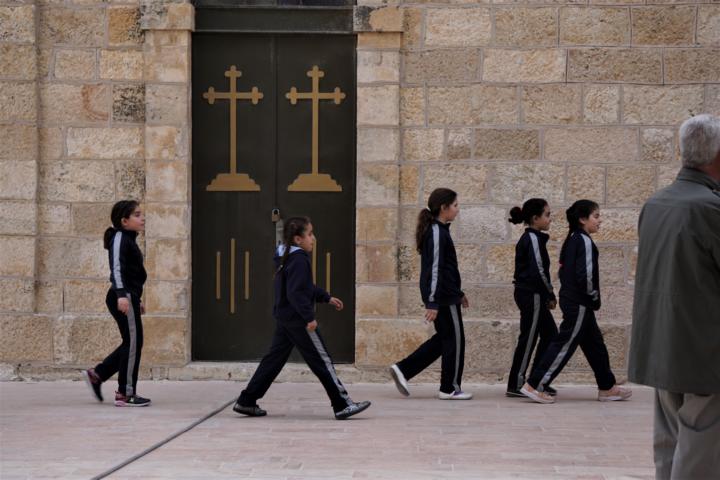 Während die Schulkinder in die Kirche gehen, kommen meine Mitreisenden wieder hinaus.