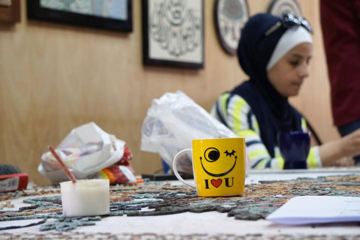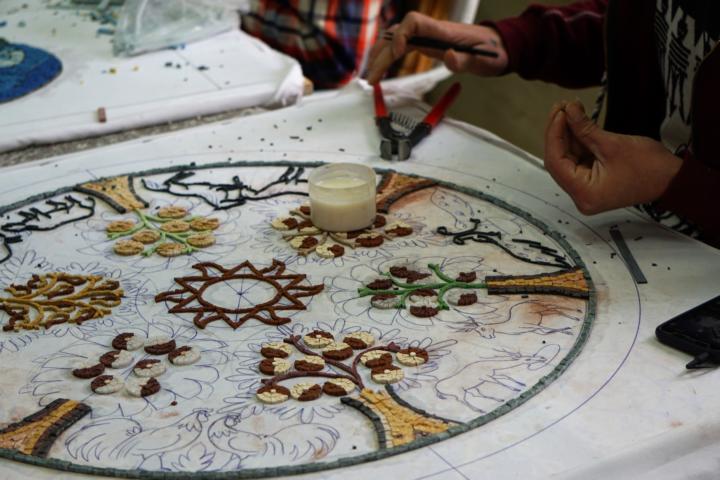 Falls außer mir noch jemand die romantische Vorstellung von meditativer Mosaikkunst hat: Es arbeitet sich auch sehr gut wenn man nebenbei einen Blick auf einen spannenden Film werfen kann.