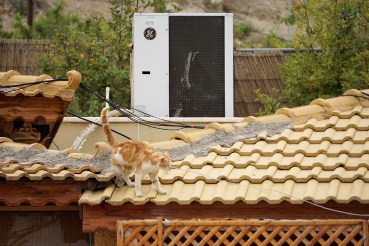 Anschließend war ich sehr hungrig und habe große Mengen Hummus in mich hineingelöffelt und danach arabischen Kaffee mit Kardamom getrunken. Den mag ich zuhause nicht so gerne aber hier ist er lecker. Dabei die Katze auf dem Dach beobachtet.