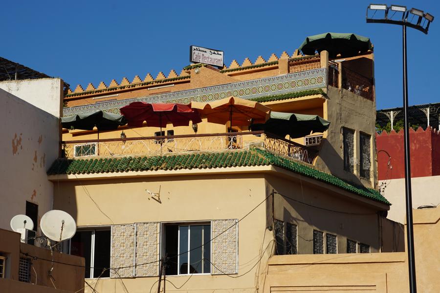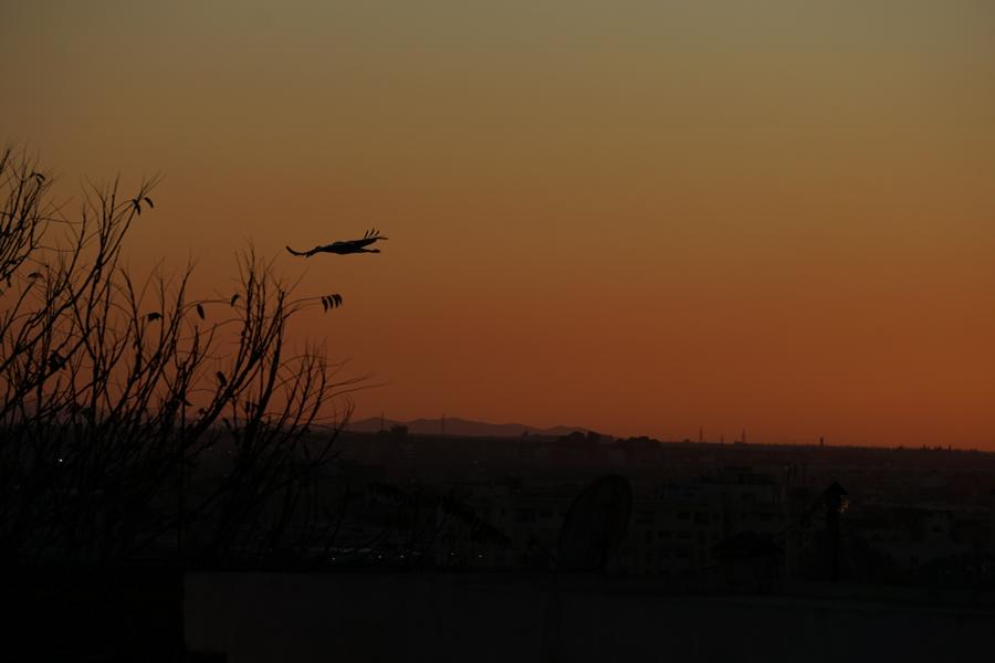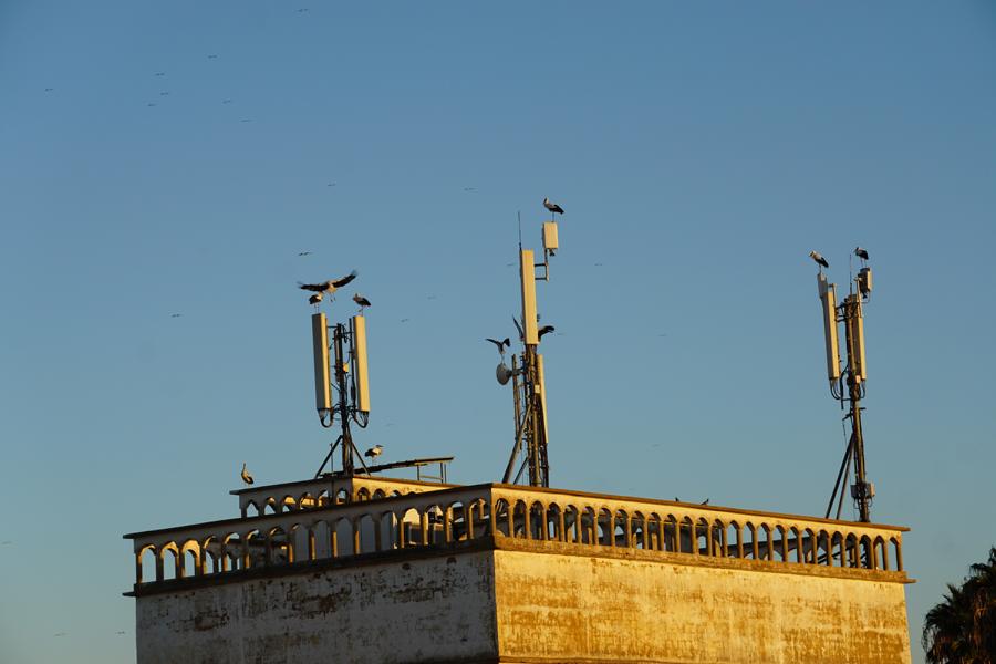 Das hat aber überhaupt nicht geklappt, denn das große Storchenspektakel ging los. Es war ganz unglaublich. Und toll. Fast eine ganze Stunde lang flogen riesige Schwärme von Störchen aus dem Umland von Meknès über mich hinüber und in die Stadt hinein. Es nahm kein Ende, das Geklapper war groß und ich war vollkommen hingerissen und glücklich.