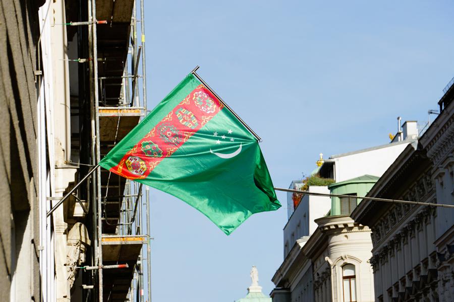 Diese hübsche grüne Fahne wehte vor der Turkmenischen Botschaft.